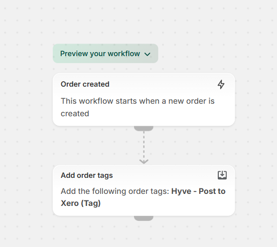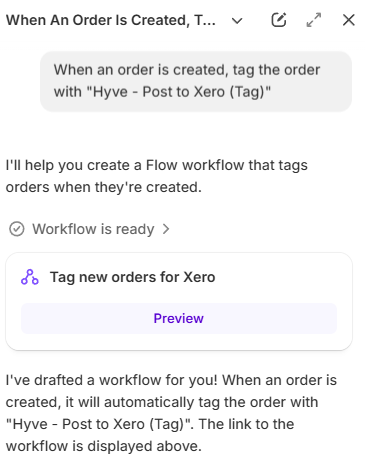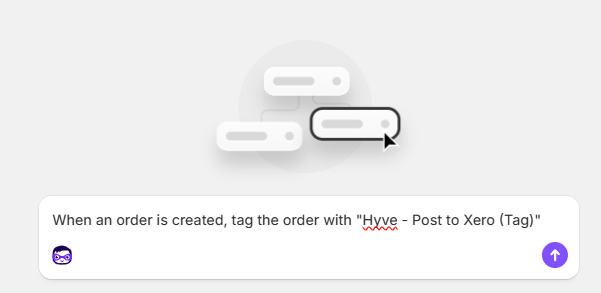 a. In the generator text field, enter the following phrase: When an order is created, tag the order with "Hyve - Post to Xero (Tag)"