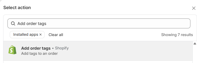 d. Search for Add order tags and select it.