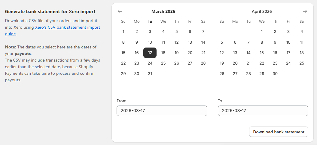 - Look for Generate bank statement for Xero import.