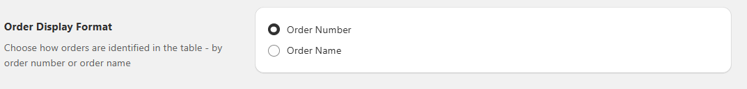 Choose how orders appear in the Orders Dashboard either by the order number or order name.