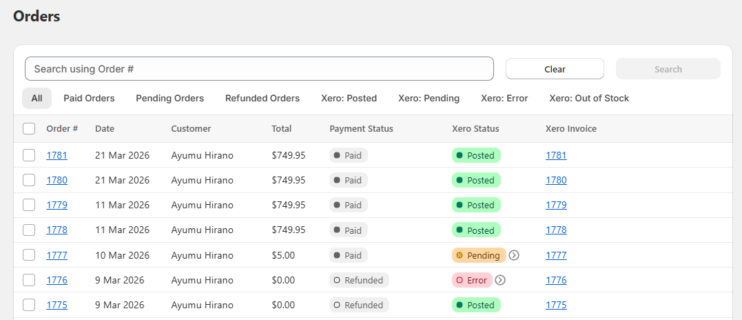 - View order status — See orders that have posted or are waiting to post to Xero.